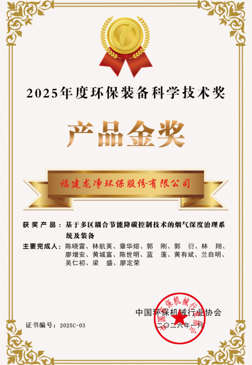近期,龙净环保自主研发的“基于多区耦合节能降碳控制技术的烟气深度治理系统及装备”项目和“高频低功耗大型玻璃管空气源臭氧发生器关键技术及产业化”项目,分别荣获中国环保机械行业协会颁发的2025年度环保装备科学技术奖产品金奖、2025年度环保装备技术创新奖一等奖。此次获奖再次彰显了公司长期坚持技术引领、持续创新迭代的硬核实力,进一步巩固了在环保装备领域的技术领先优势。